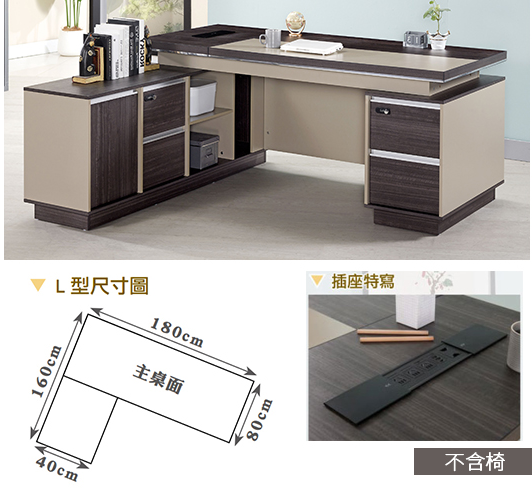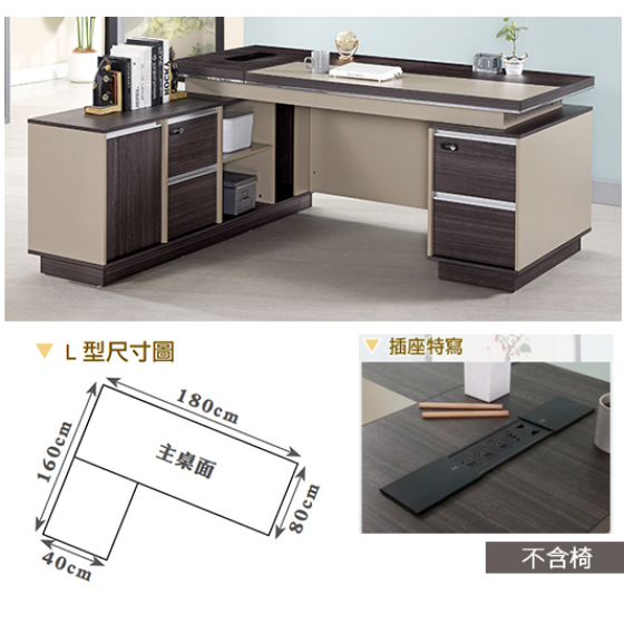 771-3 威爾汀6尺辦公桌 全組 右向 桌面附插座、 ⊙長櫃及短櫃各1個抽屜附密碼鎖、 ⊙長櫃附有出線孔.開門內無隔板$12700