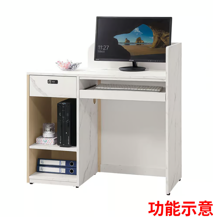 809-3 洛蒂3.3尺多功能桌 (附1片活動隔板)(抽屜採用密碼鎖設計) (不可訂製) (仿大理石紋美耐皿桌面)$7600