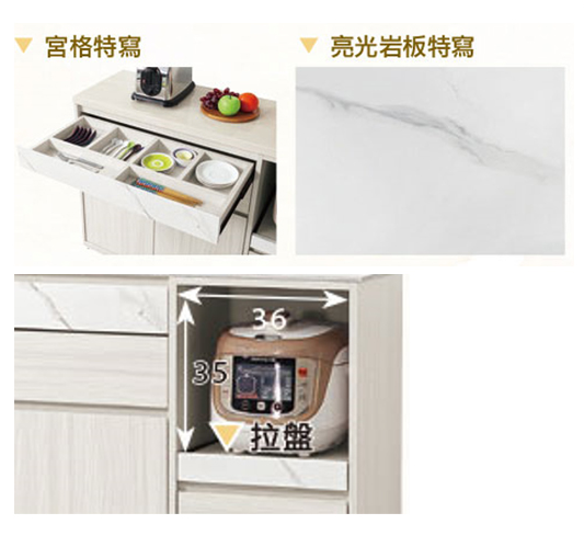 815-2 蘿拉4尺岩板餐櫃下座 ⊙附1片活動隔板$9300