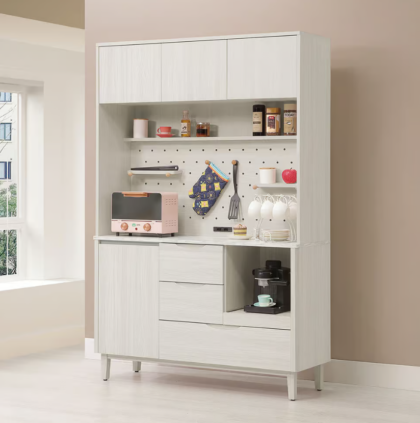 824-4 蓁妮4尺餐櫃 上+下 (下座附1個電線孔.1片活動隔板) (上座洞洞板附2片小隔板+4支長木棍+3支短木棍配件.另附1個2孔2插座.木門內無隔板)$14700