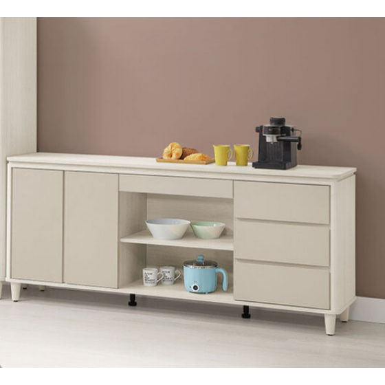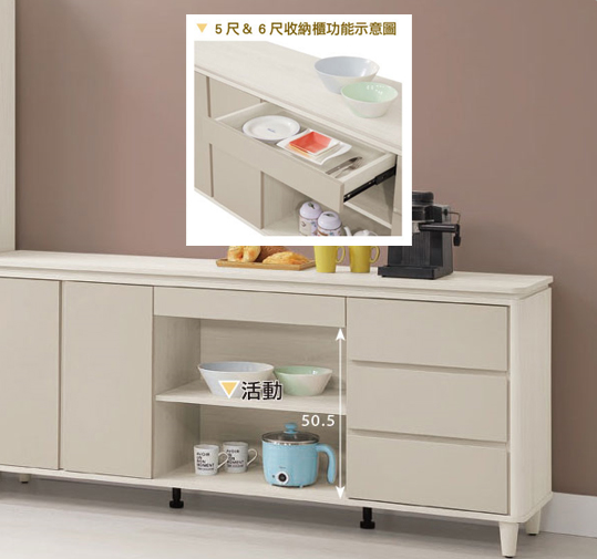 830-4 蕾佳娜6尺餐櫃 ⊙採斜邊手把設計、 ⊙開門內附1片活動隔板$10700