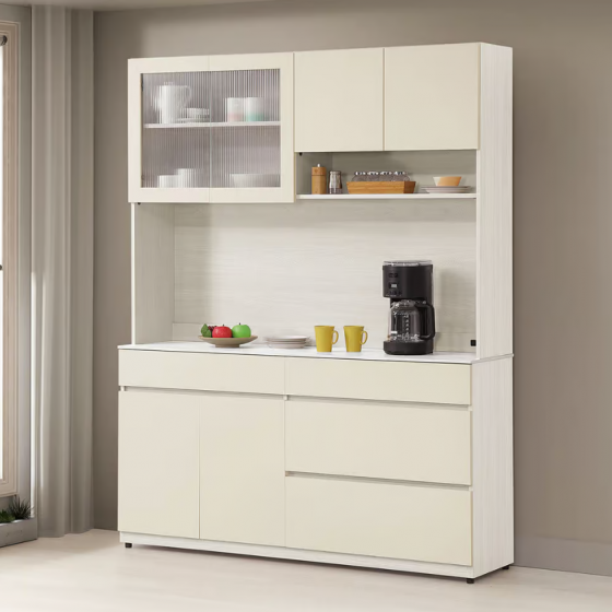 832-4 燕麥5.3尺岩板餐櫃 上+下 ⊙上座附1個插座、 ⊙附2片活動隔板⊙上座左邊開門為5mm長虹玻璃$19500