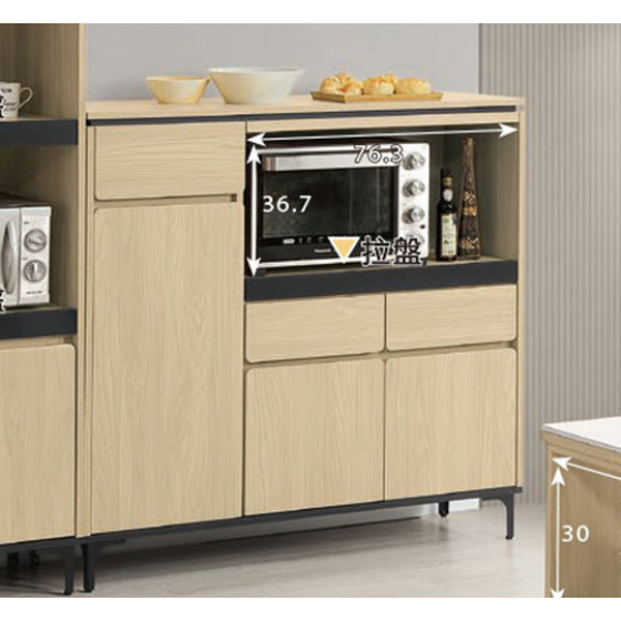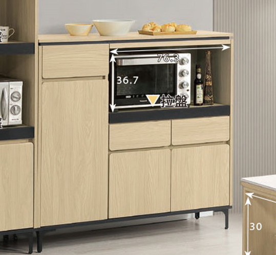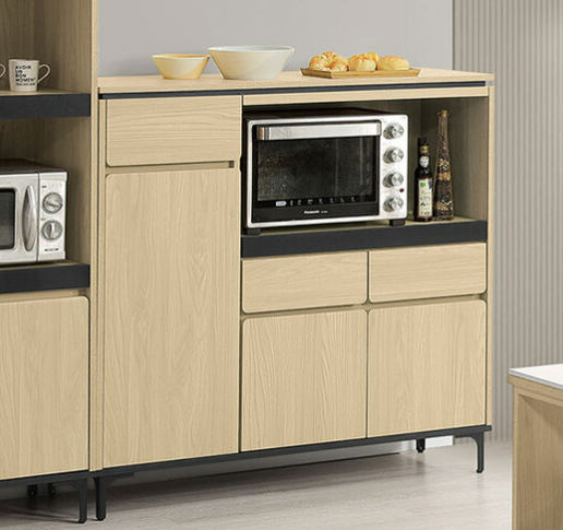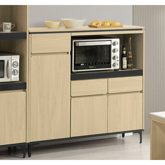 839-3 優悅4尺木面餐櫃 ⊙附1大2小活動隔板.附1個出線孔、 烤漆黑鐵腳$8600