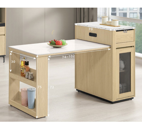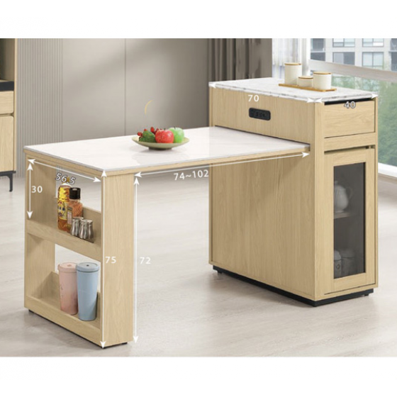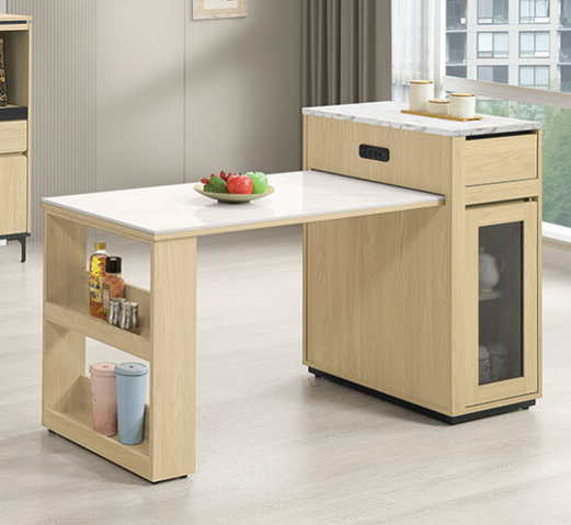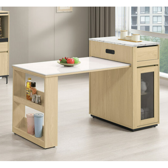 839-6 優悅4.2尺伸縮中島岩板餐桌櫃 ⊙附1片活動隔板.附USB-TYPE-C插座、 ⊙兩面單抽.單門皆可開$13400