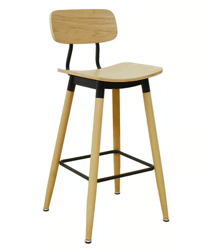 933-3 高爾木面吧台椅 (坐寬41坐深36坐高73cm) 材質: (曲木+貼木紋皮鐵製腳架)$2200