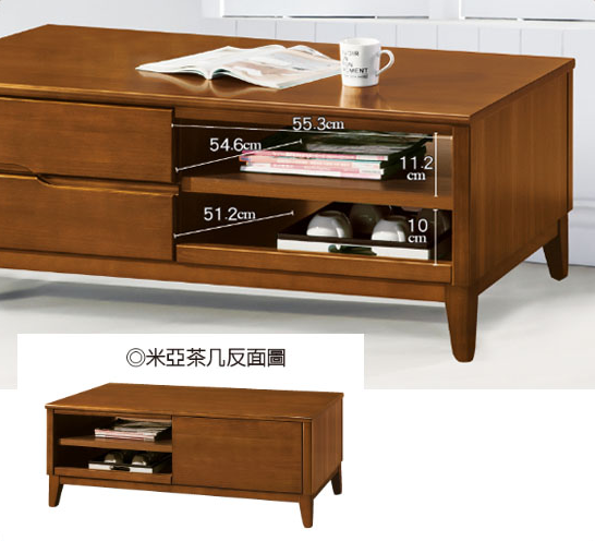 E244-3 米亞淺胡桃4尺茶几 ⊙單面抽屜共2抽$10200