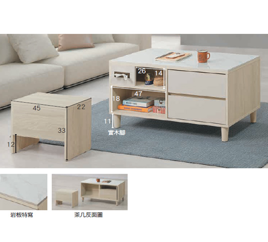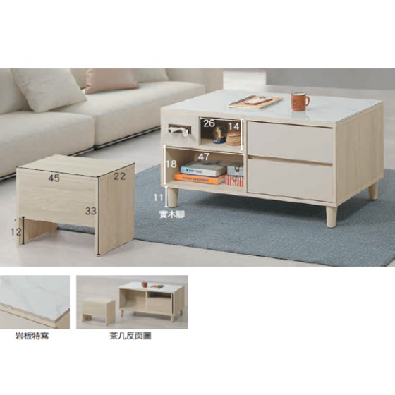 E252-3 艾薇拉3.3尺茶几 岩板$8600 E252-4 艾薇拉3.3尺茶几 木面$6200