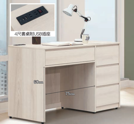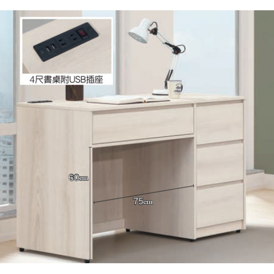 E316-4 卡洛琳北美杉木4尺書桌 ⊙附USB插座$7300