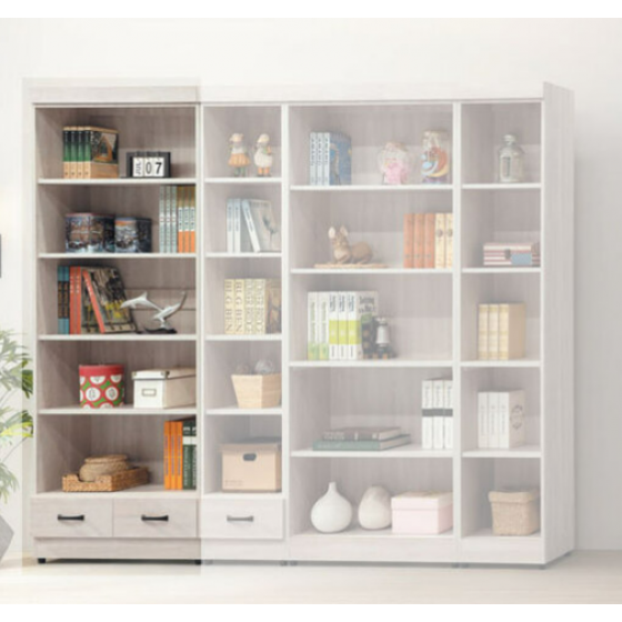 E322-5 鋼刷白有抽開放式2.6尺書櫥$4000