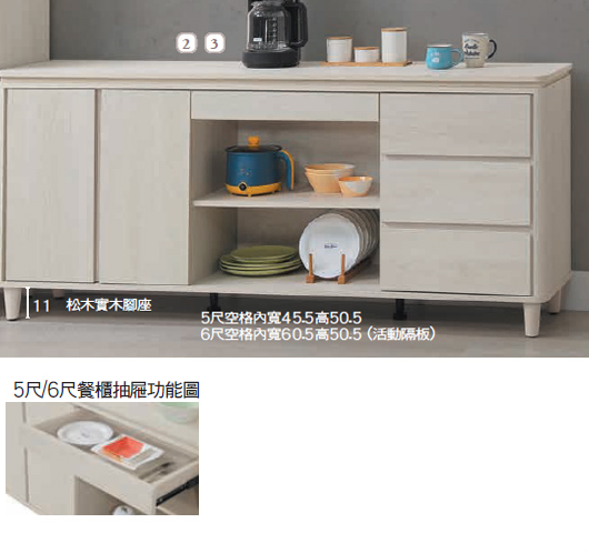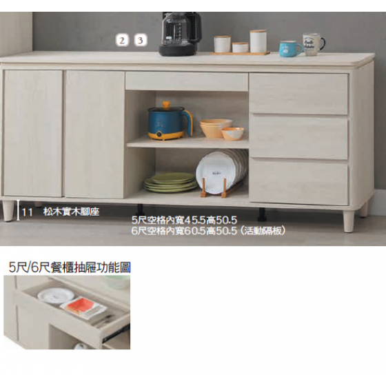 E371-2 緹亞娜5尺餐櫃下座 ⊙活動隔板二片$8200 E371-3 緹亞娜6尺餐櫃下座 ⊙活動隔板二片、$9000 E371-5 緹亞娜4尺餐櫃下座 ⊙隔板X1、$6300