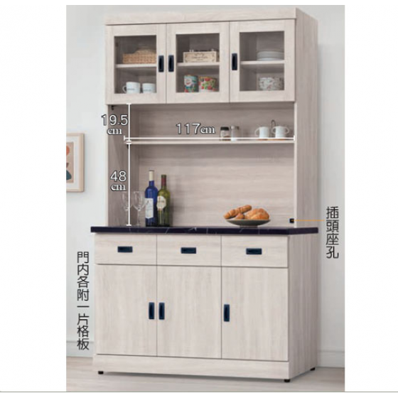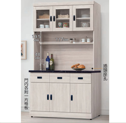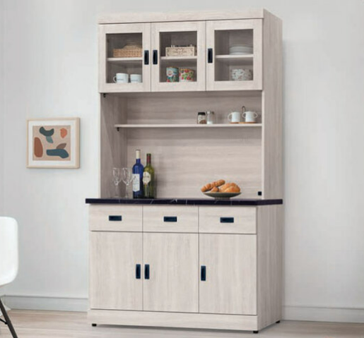 E375-1 歐肯鋼刷白5.3尺碗碟櫃 全組/含石面$14800 E375-2 歐肯鋼刷白2.7尺碗碟櫃 全組/含石面$9300 E375-3 歐肯鋼刷白4尺碗碟櫃 全組/含石面$12400