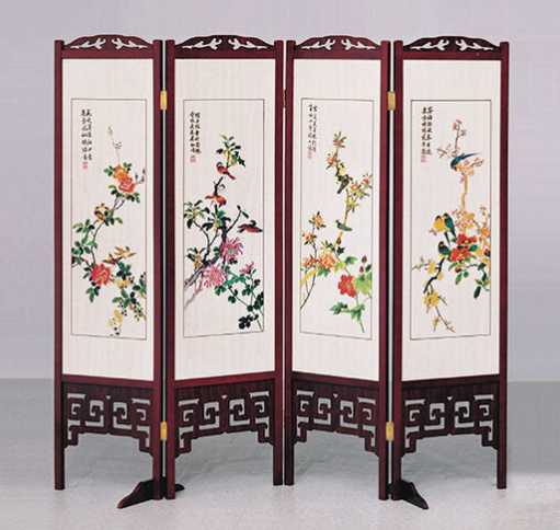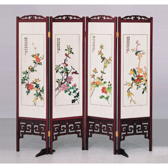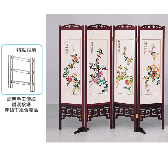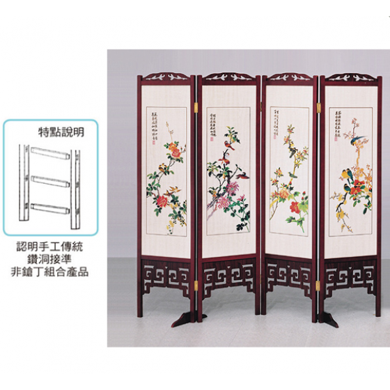 E458-3 彩色花鳥屏風 612紅木 雙面精密印刷$4200