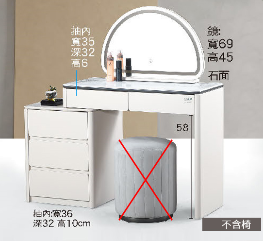 C630-2 5026化粧台+側櫃 ⊙含鏡、不含椅子$11800