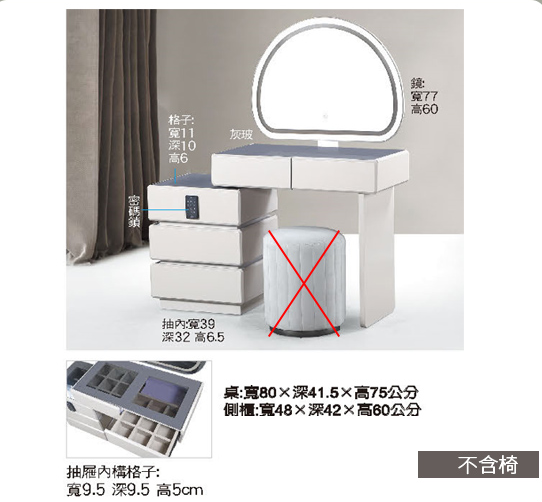 C630-6 8112化粧台+側櫃 ⊙含鏡、不含椅子$11300
