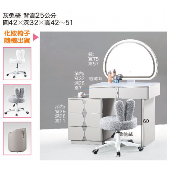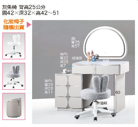 C630-7 8113淺灰化粧台+側櫃 ⊙全組、含鏡、含椅子$10000