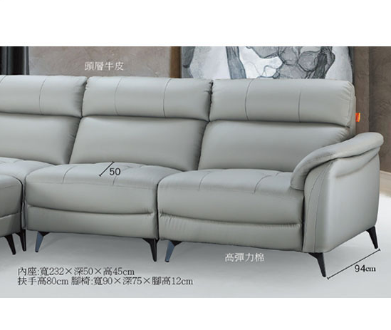 C711-1 TK 8B灰皮L型沙發頭層牛皮/半牛/不分左右$43400