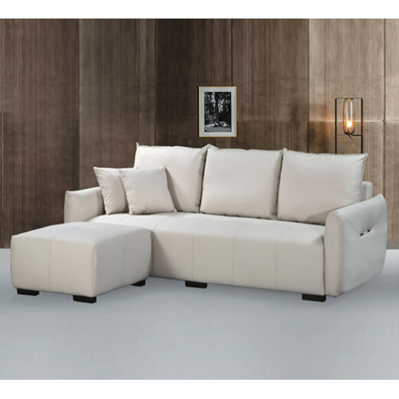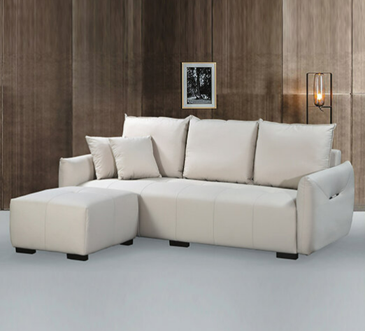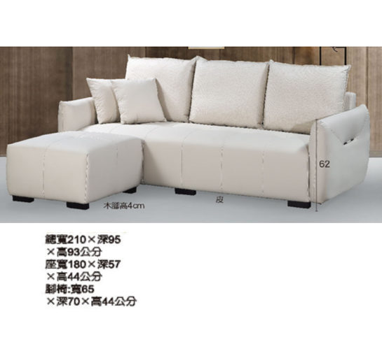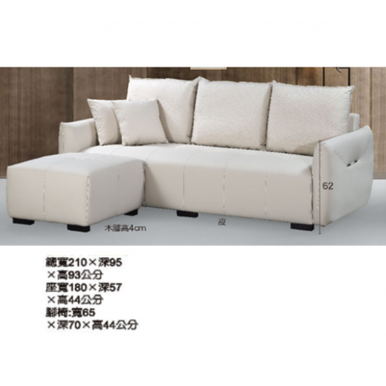 C719-3 128淺奶杏L型沙發 三人+腳椅$15600