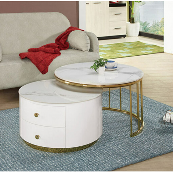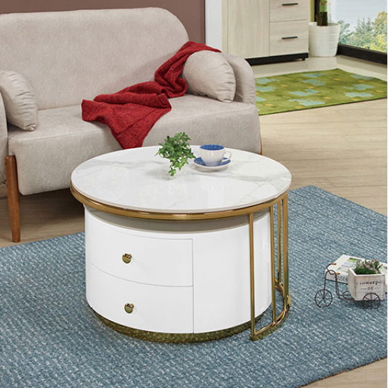 281-4 高知二抽岩板組合圓几(全組.恕不拆賣)$8000
