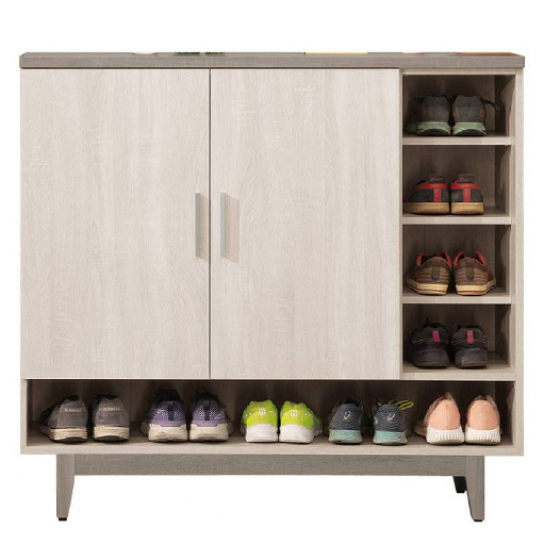 373-2 海芋2.65尺開放式二門高鞋櫃(附6大6小活動隔板 1大1小固定隔板 左上腹1個通氣網 整台F3低甲醛防蛀木心板製成)$8000 373-3海芋4*4尺鞋櫃(附3大3小活動隔板 左上腹1個透氣孔 鞋長可容納至37.5公分)$7600 373-4 海芋4尺單抽轉向坐鞋椅(坐板可隨意轉左 轉右坐)$3700