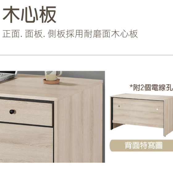 416-2 萊斯5尺書桌(不含活動櫃)(附2個電線孔)$4900 416-3萊斯1.3尺活動櫃$2400 416-4萊斯4尺書桌(不含活動櫃)(附2個電線孔)$4800 416-5萊斯2.64尺書桌(不含活動櫃)(附1個電線孔)$3900 416-6萊斯2*6.3尺無抽收納櫃(木門內附1片活動隔板)$5000