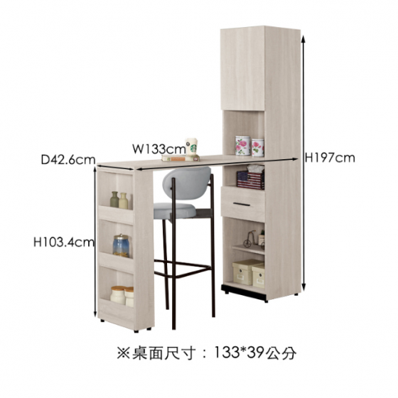 545-2伊凡卡中島型吧台桌櫃(不分左右可任意擺放 附2片活動隔板 桌面尺寸:133*39公分)$8100
