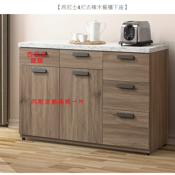 552-4肯尼士4尺餐櫃(上+下)(附3片活動隔板 附插座*1)$11800 552-5肯尼士4尺餐櫃下座(附1片活動隔板 左上抽內為刀叉抽)$6600