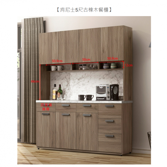 552-6肯尼士5.3尺餐櫃(上+下)(附4片活動隔板 附插座*1)$15100 552-8肯尼士5.3尺餐櫃下座(附1大1小活動隔板 左上抽內為刀叉抽)$8900