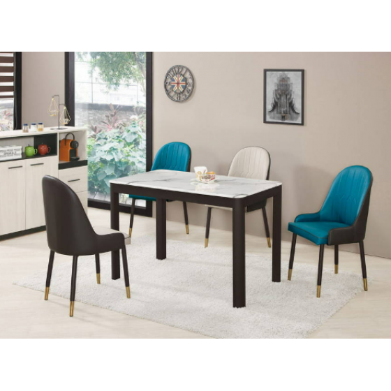 563-2坦菲黑色4尺石面餐桌$4200 589-4正棋灰棕色皮餐椅(坐寬41坐深45坐高45公分)$1500 589-5正棋藍棕色皮餐椅( 坐寬41坐深45坐高45公分 )$1500