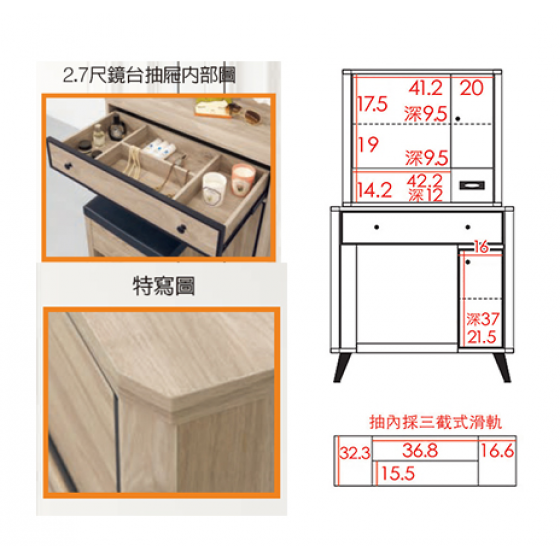 C048-4 艾維2.7尺鏡台(整組 含椅)$8400 C048-5 艾維2尺鏡台(整組 含椅)$6900