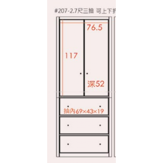 C048-6 艾維2.7尺單吊三抽衣櫃(可上下拆)$9700 C048-7 艾維2.7尺雙吊衣櫃$9000