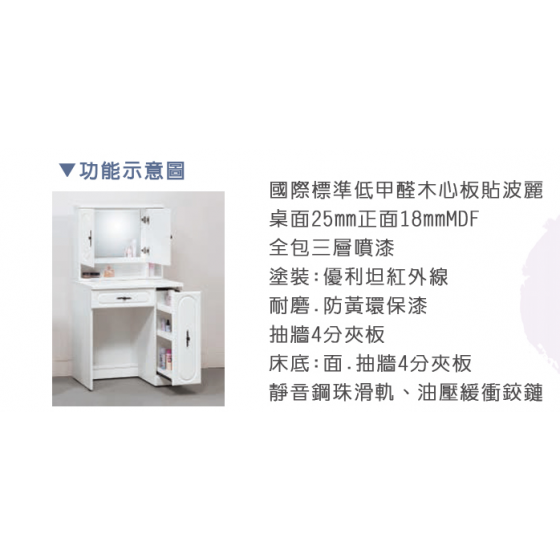 C065-6 愛黛兒烤白2.5尺化粧台(含椅)$8900 C067-11 愛黛兒烤白3.5尺化粧台(含椅)$9400
