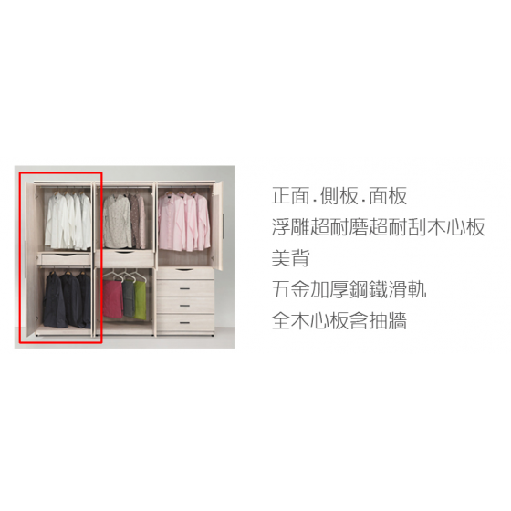 C086-7 麗寶白雲橡2.5*7尺雙吊衣櫃(內抽)$7800 C086-8麗寶白雲橡2.5*7尺中抽雙吊衣櫃$7800 C086-9麗寶白雲橡2.5*7尺四抽衣櫃$8000
