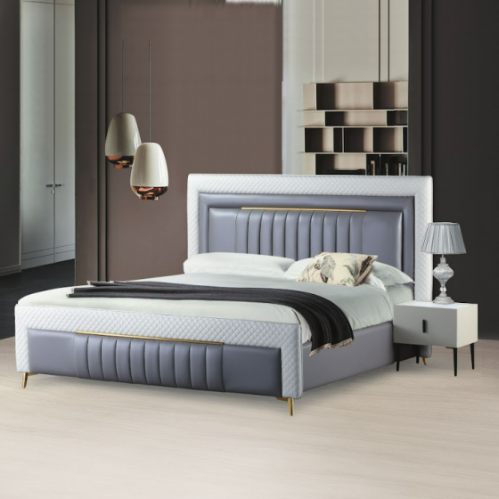 C121-1 元寶6尺床台(淺+灰皮 折疊實木排骨架床板)$27400
