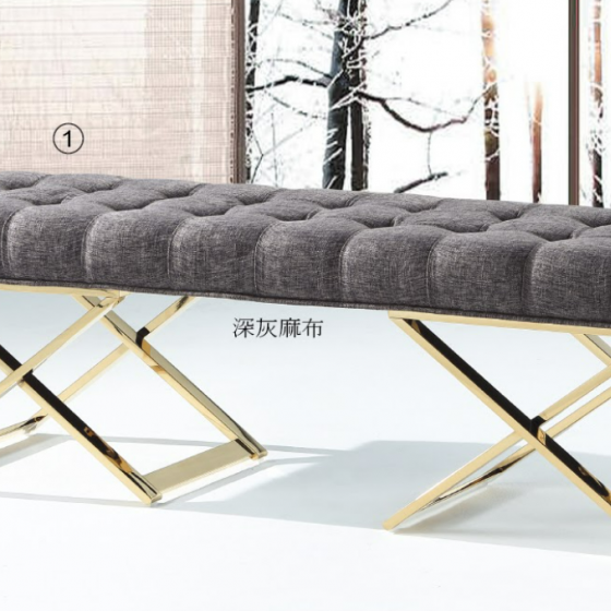 C216-1 丹尼斯5尺床尾椅(19-05/金腳 深灰麻布)$9600 C216-2 丹尼斯5尺床尾椅(19-05/金腳 淺灰絨布) $9600 C216-3丹尼斯5尺床尾椅(19-05/金腳 粉紅絨布)$9600