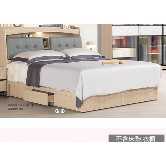 A1185-1 艾維斯6尺被櫥式雙人床 不含床墊 單邊抽屜 3.5尺+2.5尺 附LED燈具 $20000 A1185-2 艾維斯5尺被櫥式雙人床 不含床墊 單邊抽屜 附LED燈具 $16800 A1185-10 艾維斯6尺被櫥頭 附LED燈具 $8800 A1185-11 艾維斯5尺被櫥頭 附LED燈具$7300 A1185-12 艾維斯6尺抽屜式床底 單邊抽屜 3.5尺+2.5尺