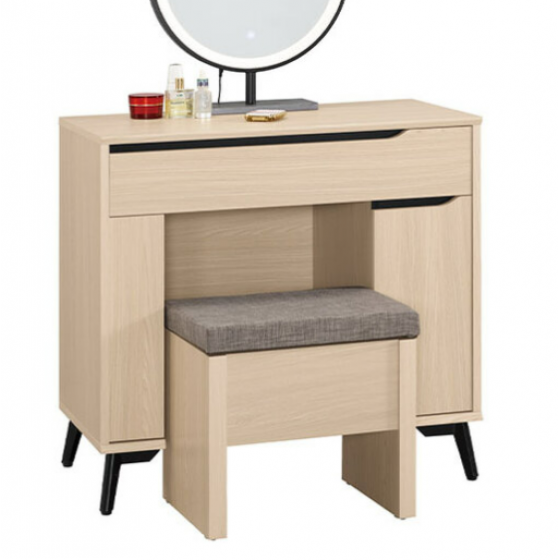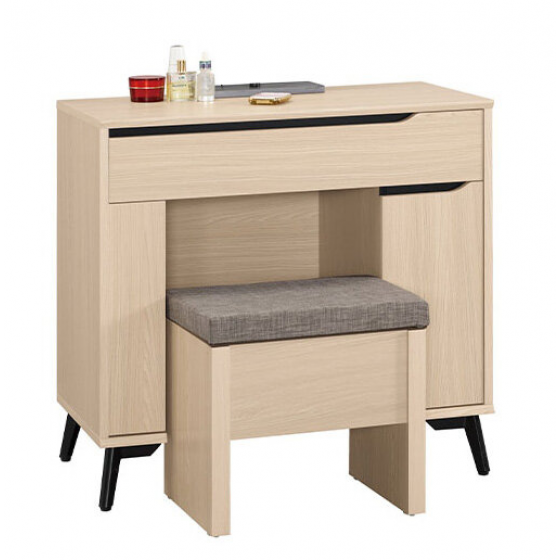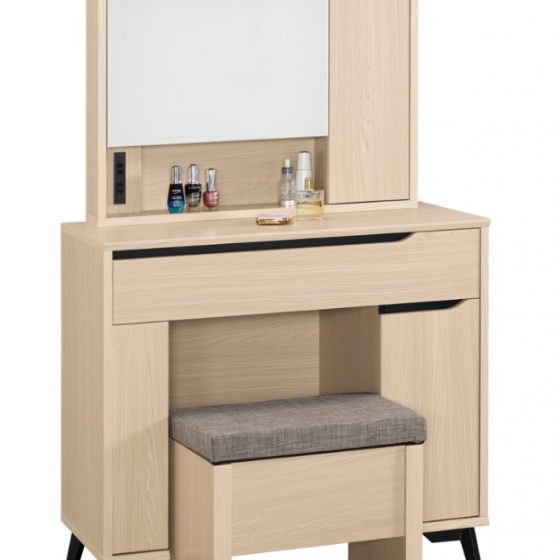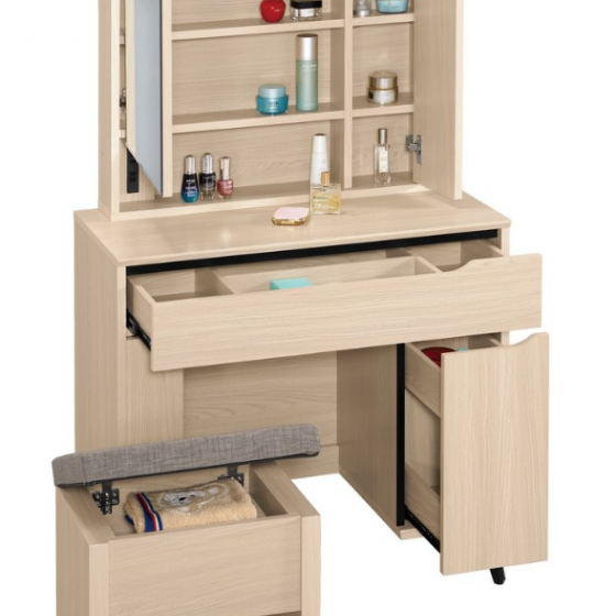 A1215-3 朵利斯2.7尺化妝台 全組 木門 含椅 附活動隔板1大2小片 $11000 A1215-4朵利斯3尺掀鏡化妝台 含椅 $8800 A1215-5 朵利斯化妝椅 可掀起置物 $1400 A1222-2朵利斯2.7尺化妝台下座$7600 A1222-1朵利斯2.7尺化妝台全組 鏡台 含椅 $9800