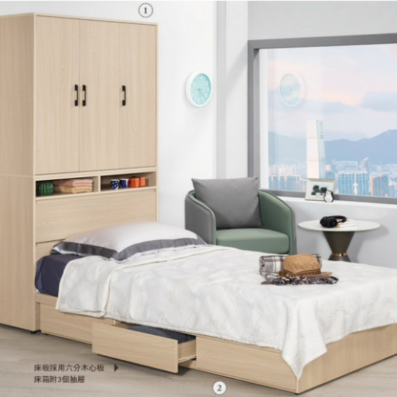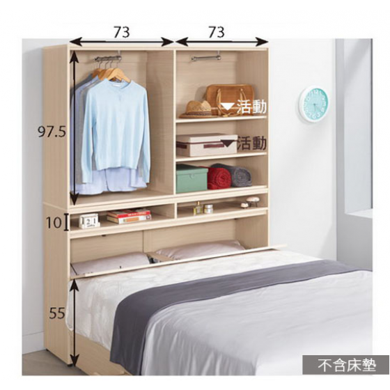 A1223-1艾維斯5尺衣櫃式多功能雙人床 全組 不含床墊 單邊抽屜 附活動隔板2片 $25600 A1224-1艾維斯3.5尺衣櫃式多功能單人床 全組 不含床墊 單邊抽屜 附活動隔板2片 $19300