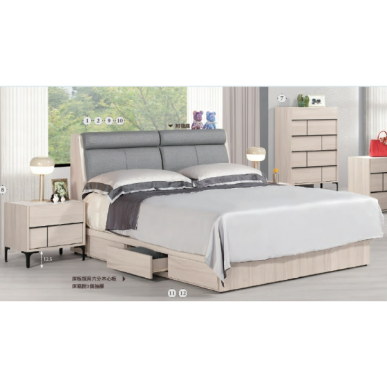 A1087-1 里斯特6尺被櫥式雙人床 不含床墊 單邊抽屜 3.5尺+2.5尺 附插座 $20500 A1087-2 里斯特5尺被櫥式雙人床 不含床墊 單邊抽屜 3.5尺+2.5尺 附插座 $17600 A1087-11 里斯特6尺抽屜式床底 單邊抽屜 3.5尺+2.5尺 $11200 A1087-12 里斯特5尺抽屜式床底 單邊抽屜 3.5尺+2.5尺 $9500