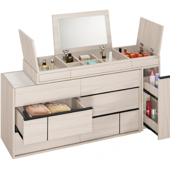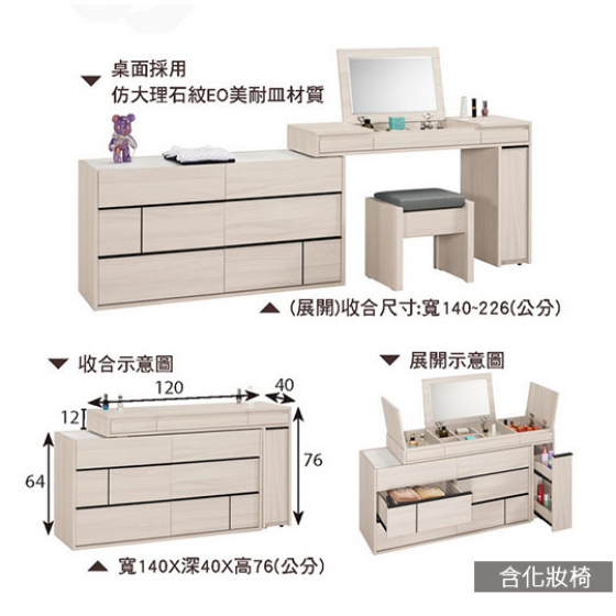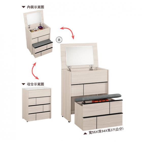 A1087-3 里斯特4.6尺多功能桌伸縮掀鏡化妝台 含椅 $18600 A1087-4 里斯特化妝椅 可掀起置物 $1300 A1087-5 里斯特2尺多功能掀鏡化妝台 含椅$7100