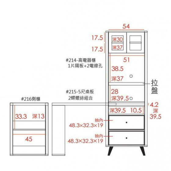 C317-1艾維2.2尺邊櫃 一抽 $5300 C370-3艾維側櫃+C370-4艾維5尺桌板+C402-3艾維2尺高電器櫃 $10000
