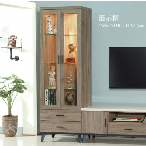 C315-2芮茲灰橡木2.2*6.5尺展示櫃 玻璃隔板3片 $6800 C927-13 芮茲灰橡木中櫃 附隔板2片 $4100