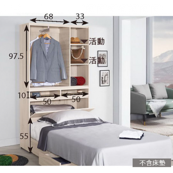 A1113-1 里斯特5尺衣櫃式多功能雙人床 全組 不含床墊 單邊抽屜 附活動隔板2片 $25600 A1114-1 里斯特3.5尺衣櫃式多功能單人床 全組 不含床墊 單邊抽屜 附活動隔板2片 $19300