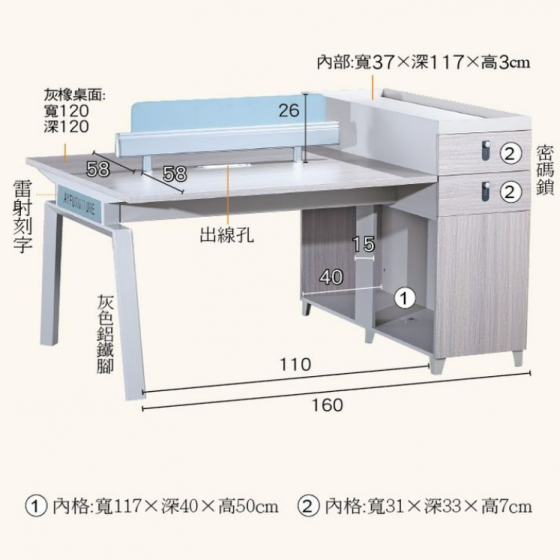 C339-3 8816 二人位辦公桌 正 反 各2抽 $8400