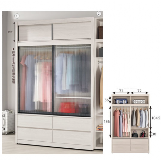 A1077-2 蘿克斯5尺鋁框四抽拉門衣櫥 $24200