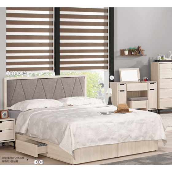 A1123-1 昆提斯6尺被櫥式雙人床 不含床墊 單邊抽屜 3.5尺+2.5尺$19800 A1123-2 昆提斯5尺被櫥式雙人床 不含床墊 單邊抽屜$16500 A1125-1 昆提斯6尺雙人床 不含床墊 單邊抽屜 3.5尺+2.5尺$17700 A1125-2 昆提斯5尺雙人床 不含床墊 單邊抽屜$15100