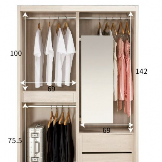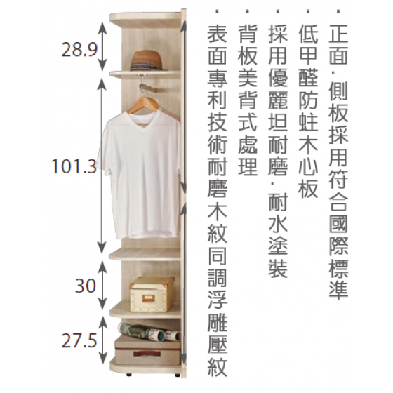 A1130-4 丹妮拉1.5尺開放置物衣櫃 可左右擺放$6600 A1130-4 丹妮拉5尺拉門衣櫥 $22000 A1130-2 丹妮拉6尺拉門衣櫥 不含內鏡$24900 A1130-1 丹妮拉7尺拉門衣櫥 附內鏡$27800