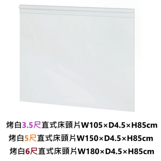 D192-19 3.5尺直式床頭片 烤白 $1800 D192-22 5尺直式床頭片 烤白 $2100 D192-25 6尺直式床頭片 $2400