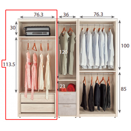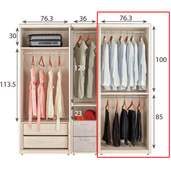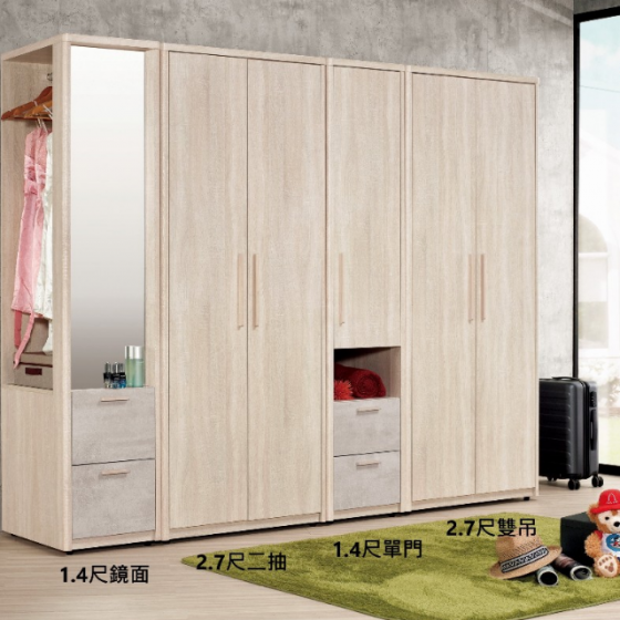 A1133-2 漢斯2.7尺衣櫥 雙吊 $10500 A1133-3 漢斯2.7尺衣櫥 二抽 $11200 A1133-4 漢斯1.4尺衣櫥 單門$9000 A1133-5 漢斯1.4尺鏡面開放衣櫥 可左右擺放 $8300