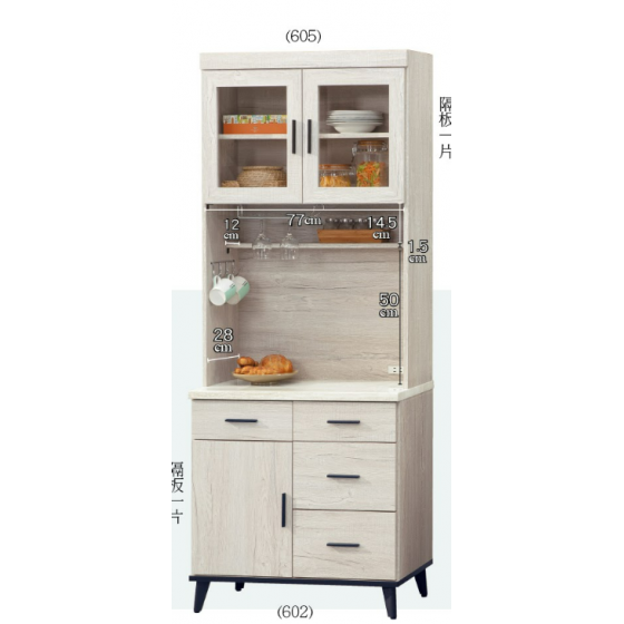 C395-1洛瑪白橡木2.7尺碗碟櫃上座$3100 C395-2洛瑪白橡木2.7尺碗碟櫃下座 仿石紋$4400