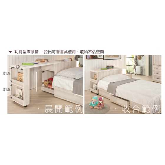 A1145-1 雪莉3.5尺多功能型單人床 不含床墊 單邊抽屜$13900 A1145-3 雪莉3.5尺功能型床頭 可左右擺放 $7000